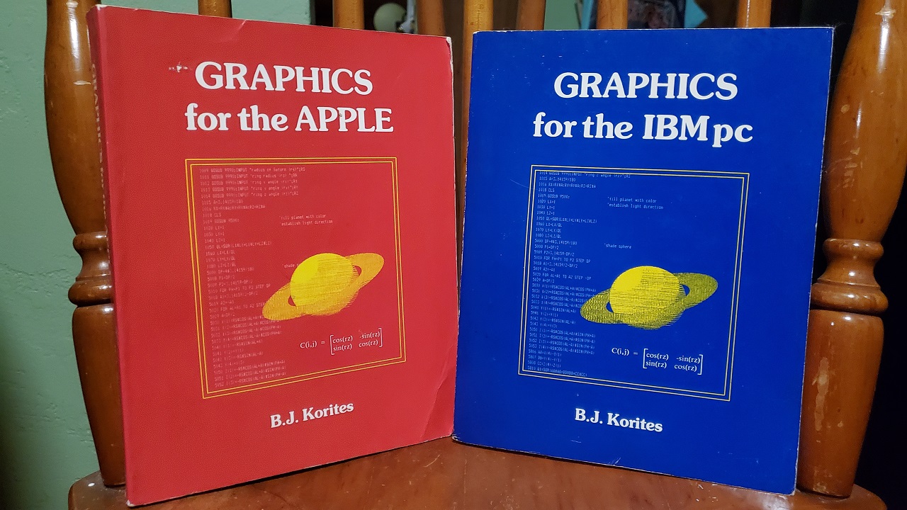 Decades later, being experienced with computers and programming, I ran across the "Graphics For The IBM PC" book online, recognizing the pixelated yellow picture of Saturn on the cover, and bought it for nostalgic reasons. I wouldn't find the Apple version until later, which I of course picked up as well, seeing as that's the original book I had, and also, I had over the years picked up some old Apple II / IIc / IIe computers that I could still use to program if I wanted.
