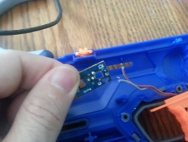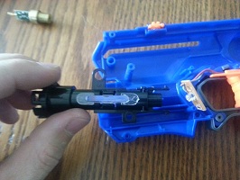 To take apart the gun, unscrew the 7 black screws holding it together, and lift off the top half of the shell, that's it. Just be careful not to lose the little nut that holds the battery door, it's very small and will bounce out of site and into the ether if it sticks to the top half of the shell and drops. Look on YouTube for nerf firestrike mods, they show how to take it apart. You need to get to the black barrel that has the LED board attached to the end of it. It simply unclips.