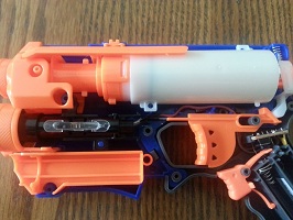 I then fit it on the inside of the orange barrel where the black barrel fits into, it simply is a press fit and won't go anywhere once the barrel is put back in place.
