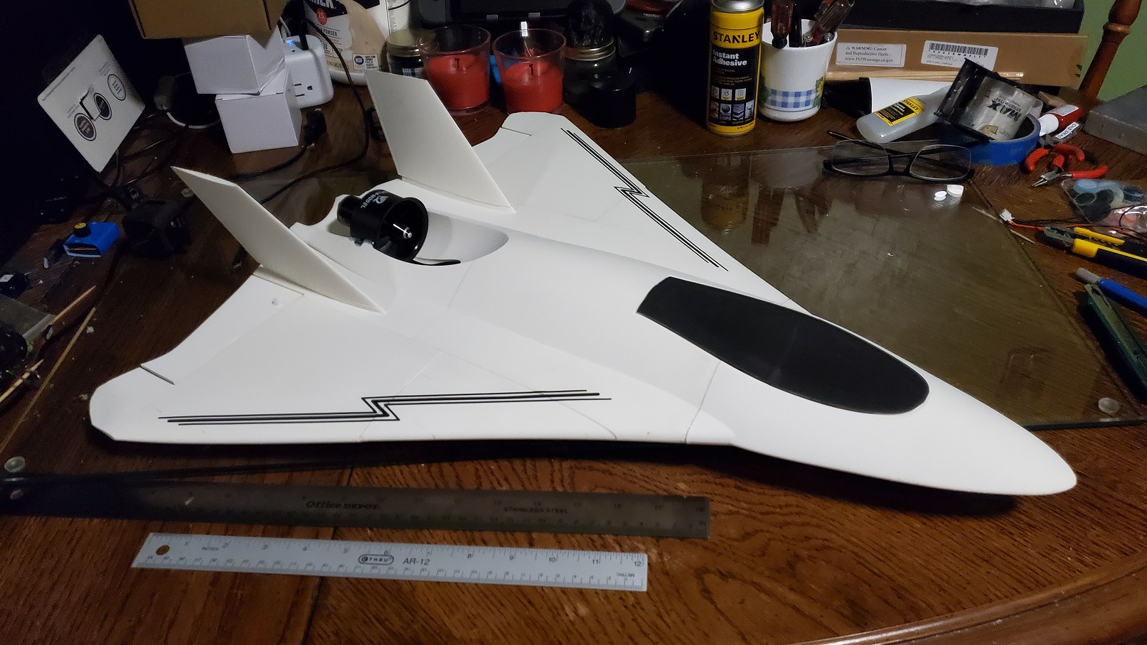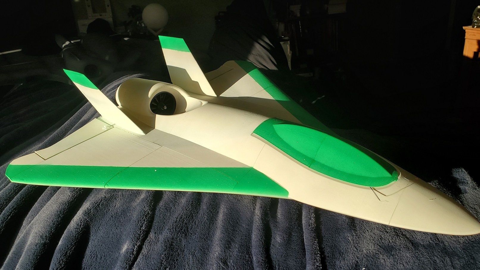Originally printed it out, but it was my first time dealing with LW-PLA, so I didn't have the correct settings. As a result, the model was almost twice as heavy as it was supposed to be. I'll spare you the first few flights of that one; just imagine throwing a brick into the air.